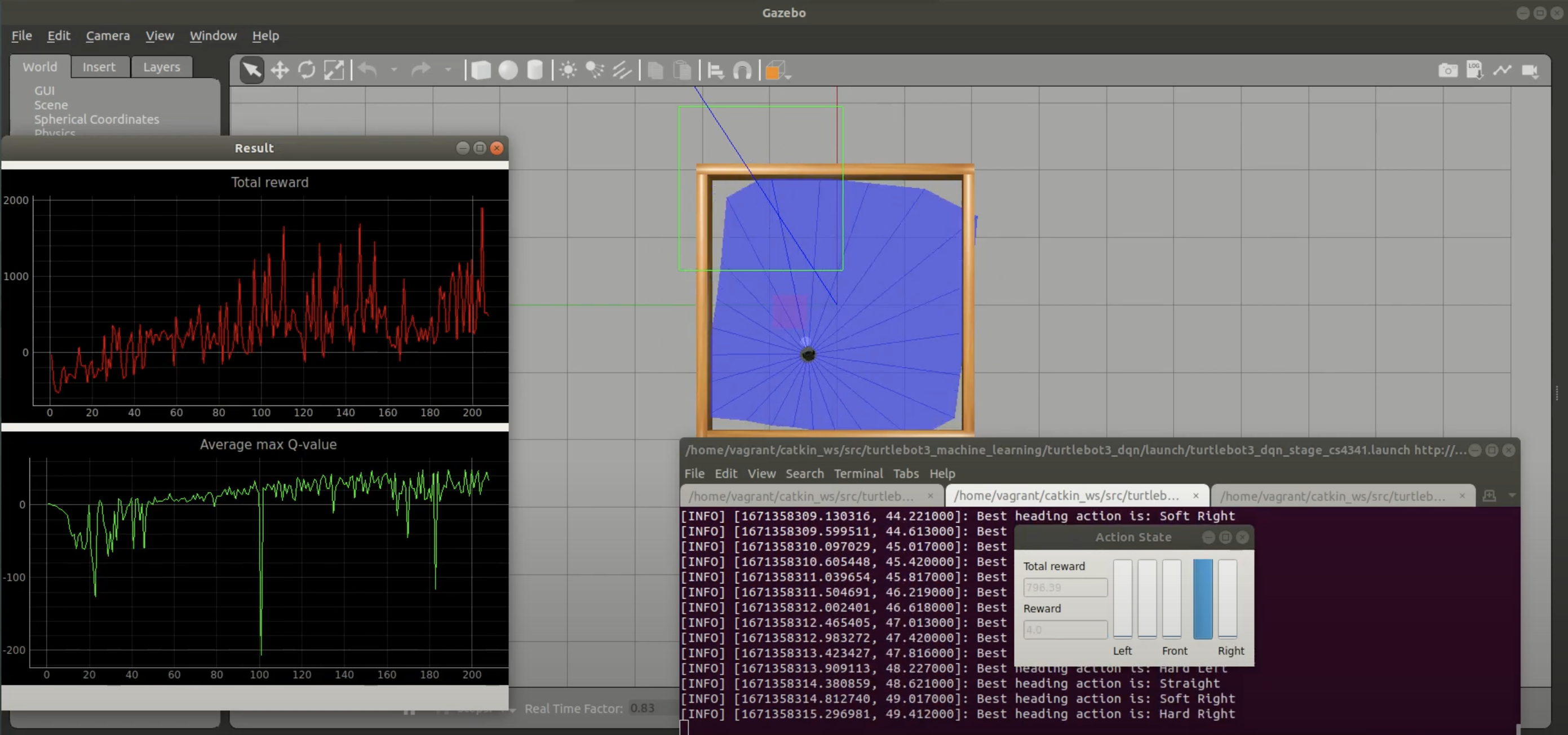 Turtlebot3 pushes a cylindrical object to goal positions using reinforcement learning with Deep Q-Learning.
